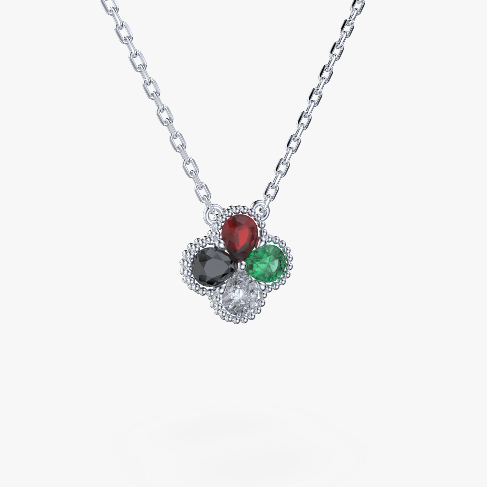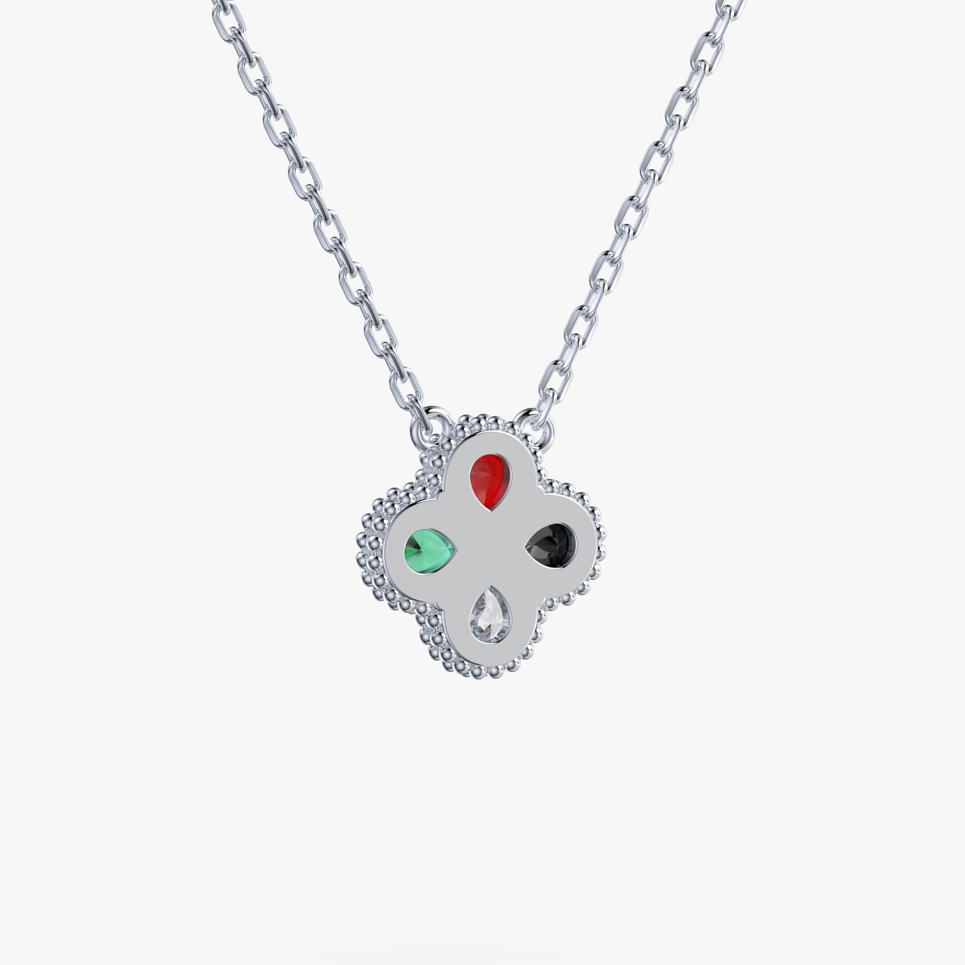 UAE National Day Clover Pendant - Sterling Silver - Moissanite