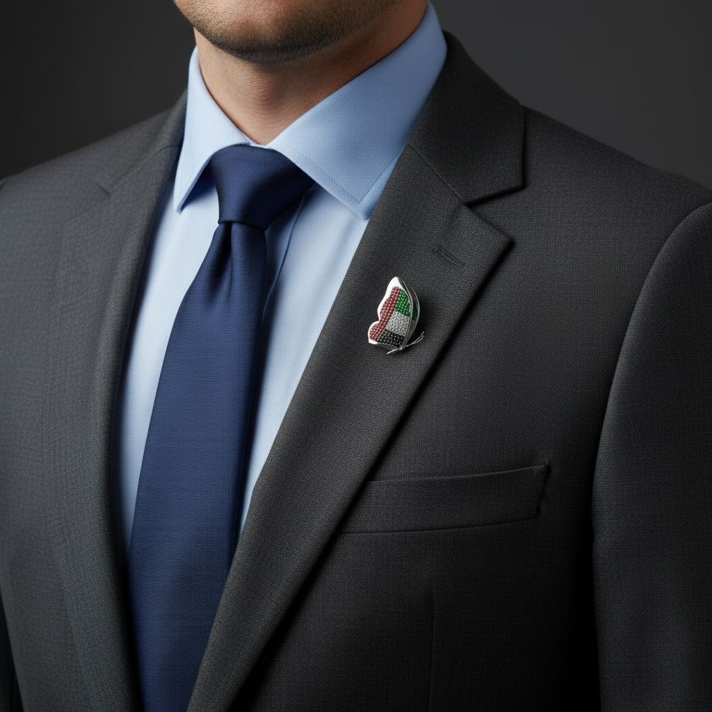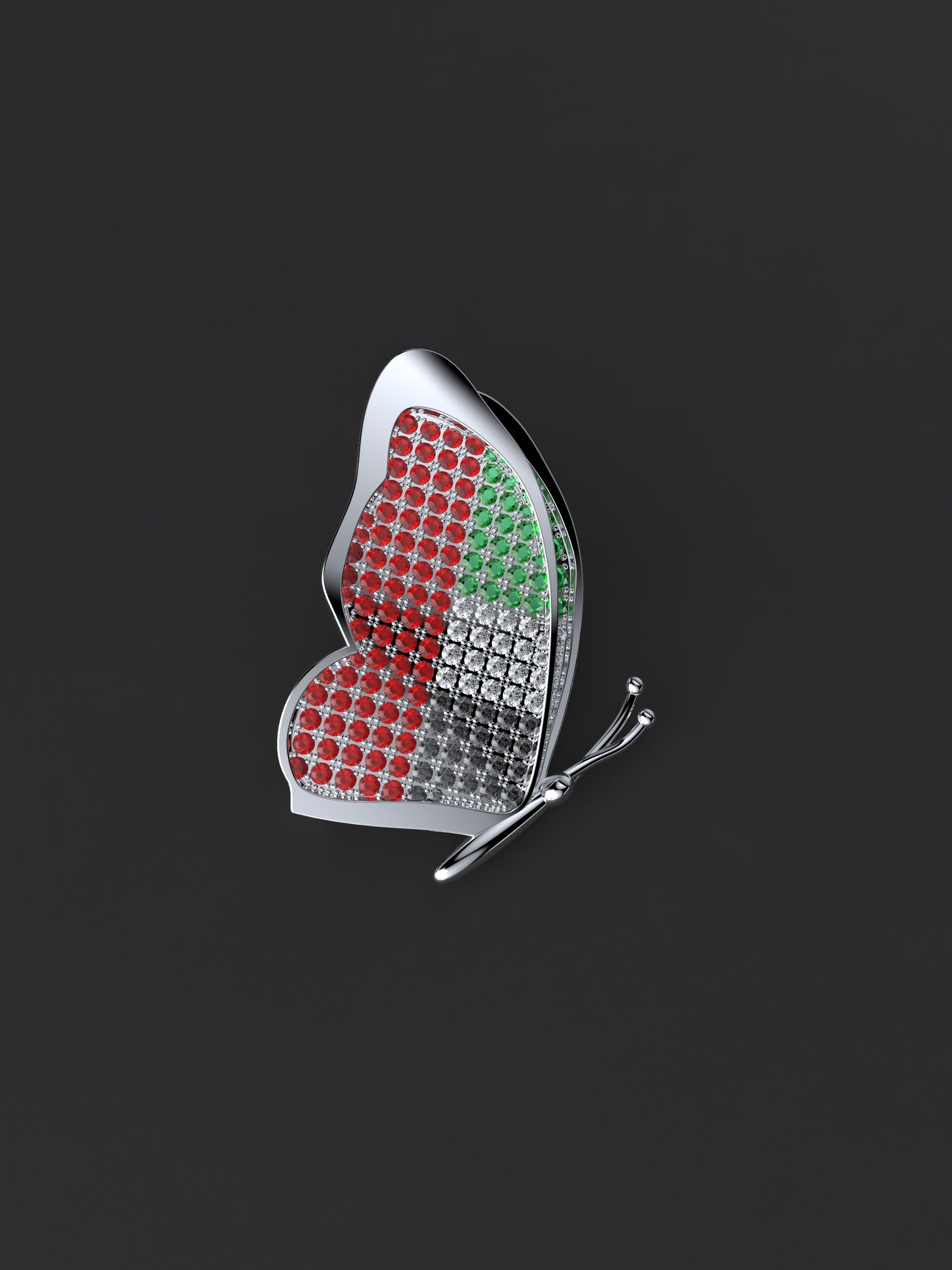 UAE National Day Butterfly Brooch - Sterling Silver - Moissanite