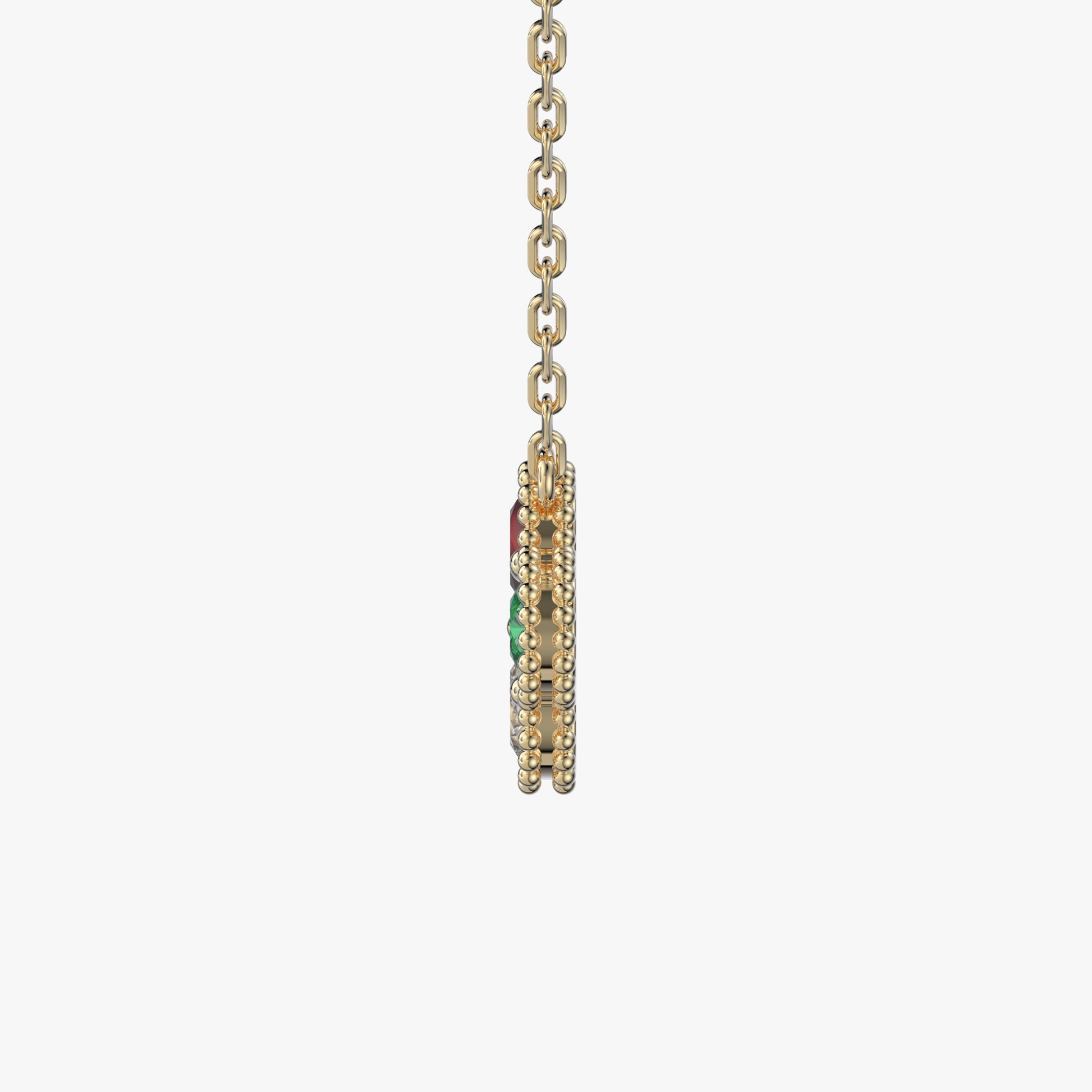 A special tribute to UAE National Day celebrations. Elegant and daring, this Clover Pendant in 18K Gold Vermeil offers a striking contrast with refined sparkle. Stones: Moissanite, Black Moissanite, Chrome Diopside, Garnet. A must-have piece for yourself or for those you love - shop now.